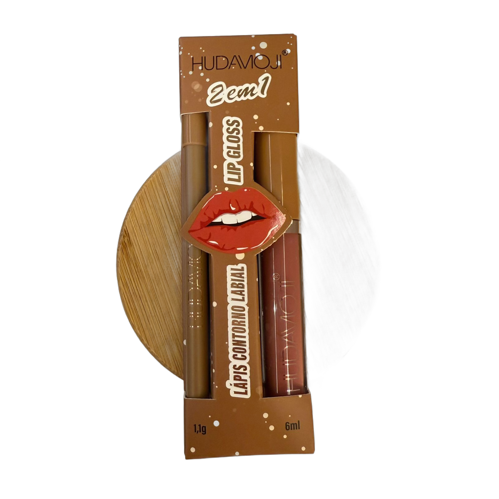 Kit Lip Combo HUDAMOJI 2 em 1 – Lápis de Contorno Labial e Lip Gloss
