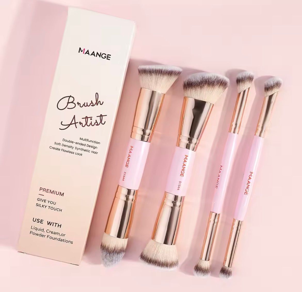 Maange conjunto de pincéis de maquiagem básicos, 4 peças, com caixa, base de ponta dupla, detalhes de blush em pó para pincéis de sombra, viagens para iniciantes