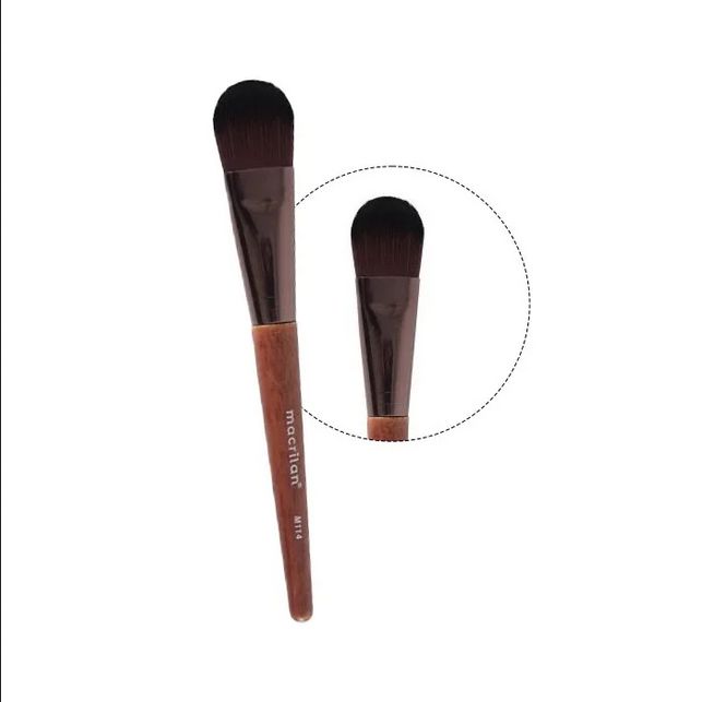 Pincel especial para aplicar base líquida ou cremosa em toda a face, pescoço e colo. Descrição Modelo: cerdas sintéticas Cor: madeira e marrom